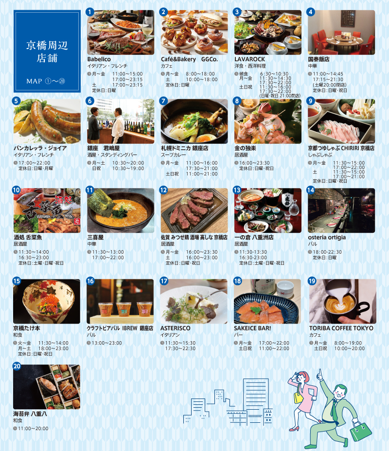 今年は、京橋・八重洲・銀座エリアの店舗や、京橋エドグラン・東京ミッドタウン八重洲・東京スクエアガーデンの施設店舗など、過去最多の90店舗が参加します。